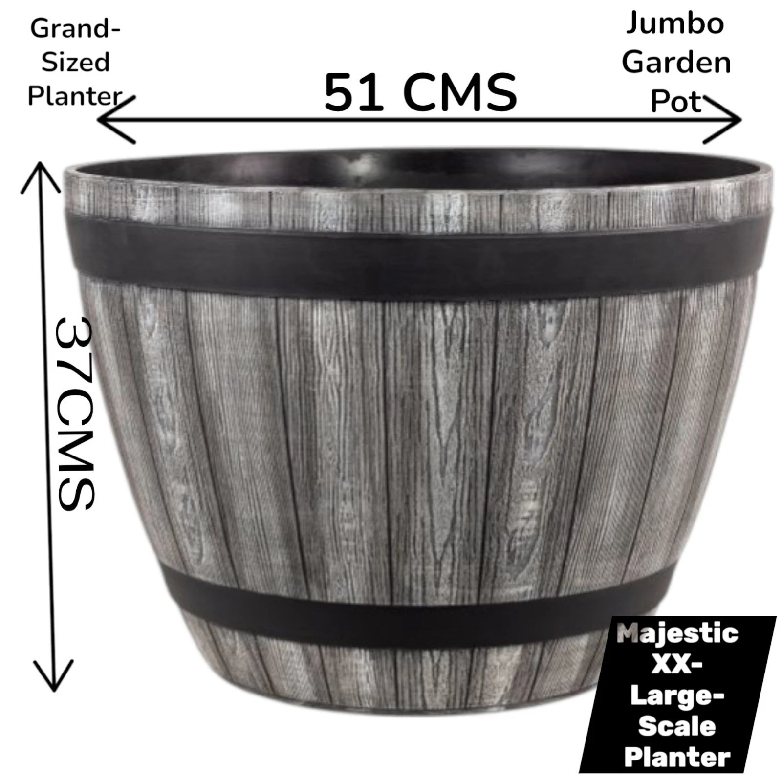• 1 × XXL Rustic Wood-Effect Barrel Planter.